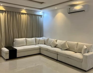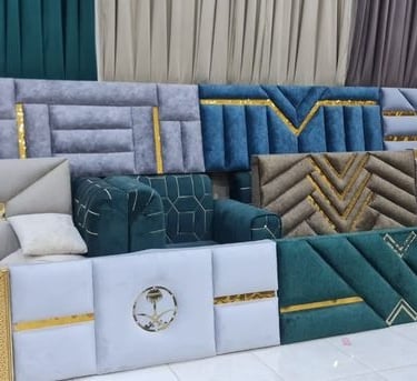 نختص بتصنيع الكنب الفاخر المصنوع يدويًا، المجالس العربية التقليدية والمودرن، والستائر الأنيقة مع قياس وتركيب مجاني في جميع أنحاء الرياض.
