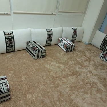 مجالس أرضية فاخرة · مجالس مع وسائد ظهر · كنب مجلس مودرن جلد وأقمشة مقاومة للماء · تنفيذ في ٧-١٠ أيام فقط