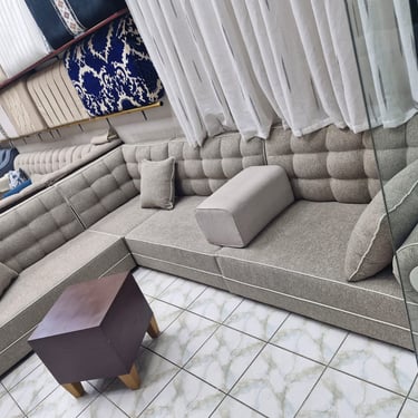 مجالس أرضية فاخرة · مجالس مع وسائد ظهر · كنب مجلس مودرن جلد وأقمشة مقاومة للماء · تنفيذ في ٧-١٠ أيام فقط