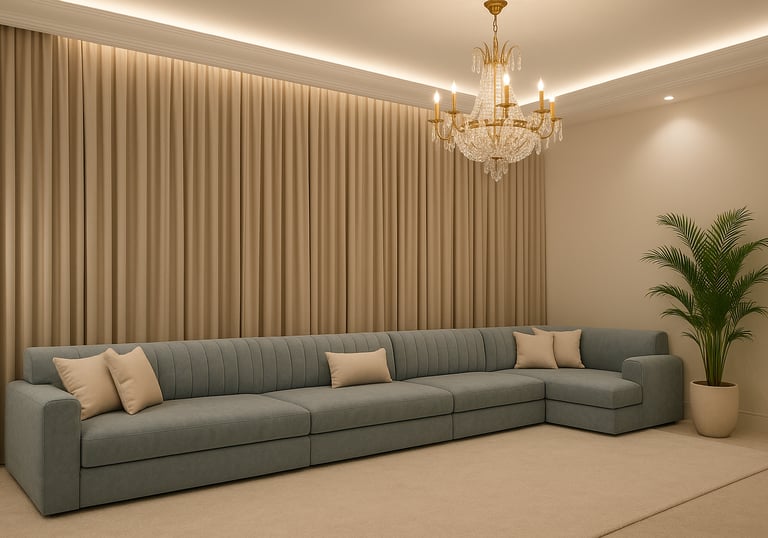 نحن متخصصون في تصنيع الأرائك الفاخرة المصنوعة يدوياً، ومقاعد المجالس العربية التقليدية والحديثة، والستائر الأنيقة، مع خدمات القياس والتركيب المجانية في جميع أنحاء الرياض.